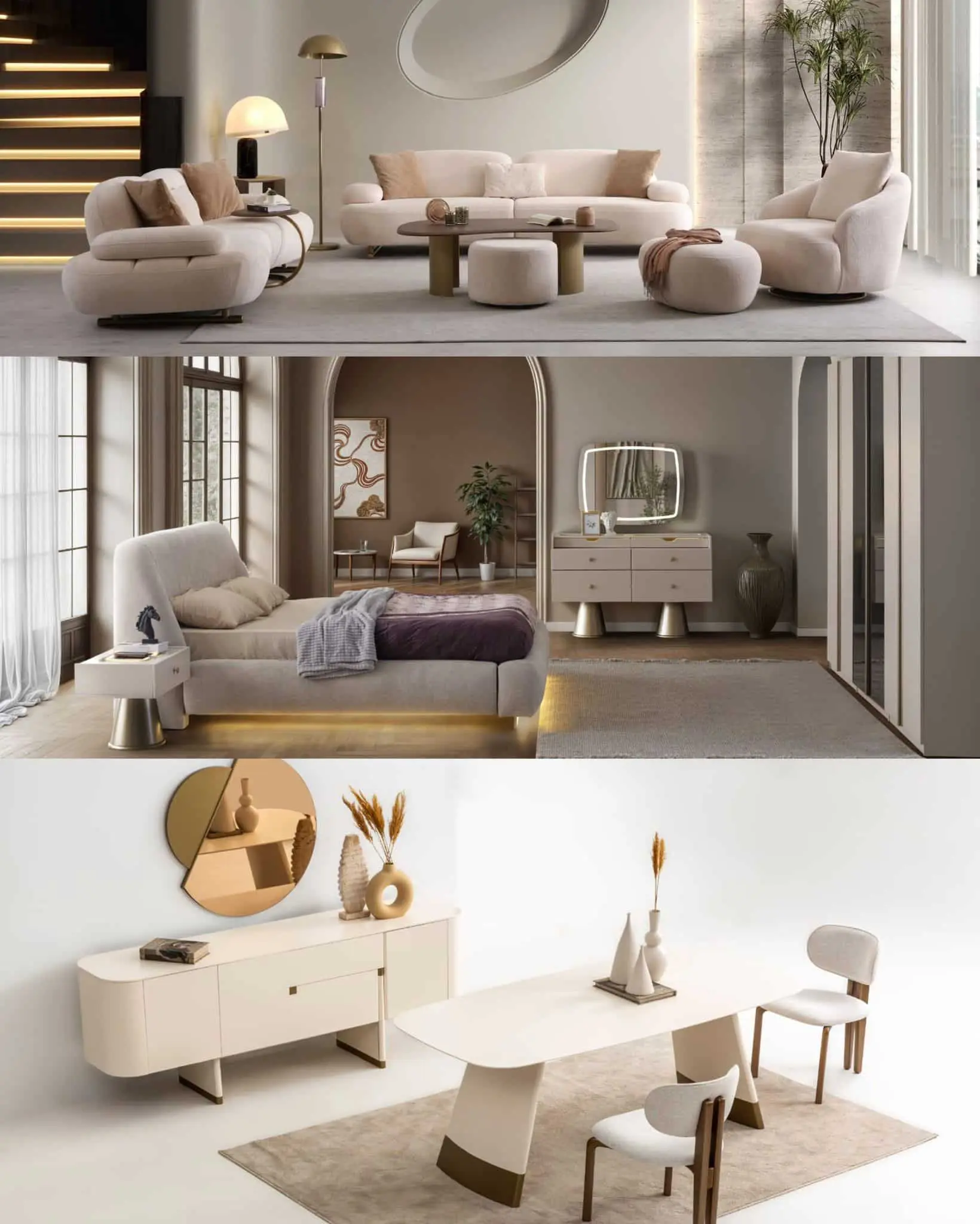 Astana Düğün Paketi Yatak Odası Takımı, Masa Konsol Ayna ve 6 Sandalye, 3 3 1 Koltuk Takımından oluşmaktadır.