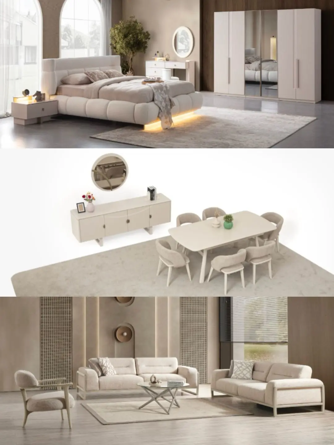 Barca Düğün Paketi  Yatak Odası Takımı, Masa Konsol ve 6 Sandalye, 3 3 1 Koltuk Takımından oluşmaktadır.