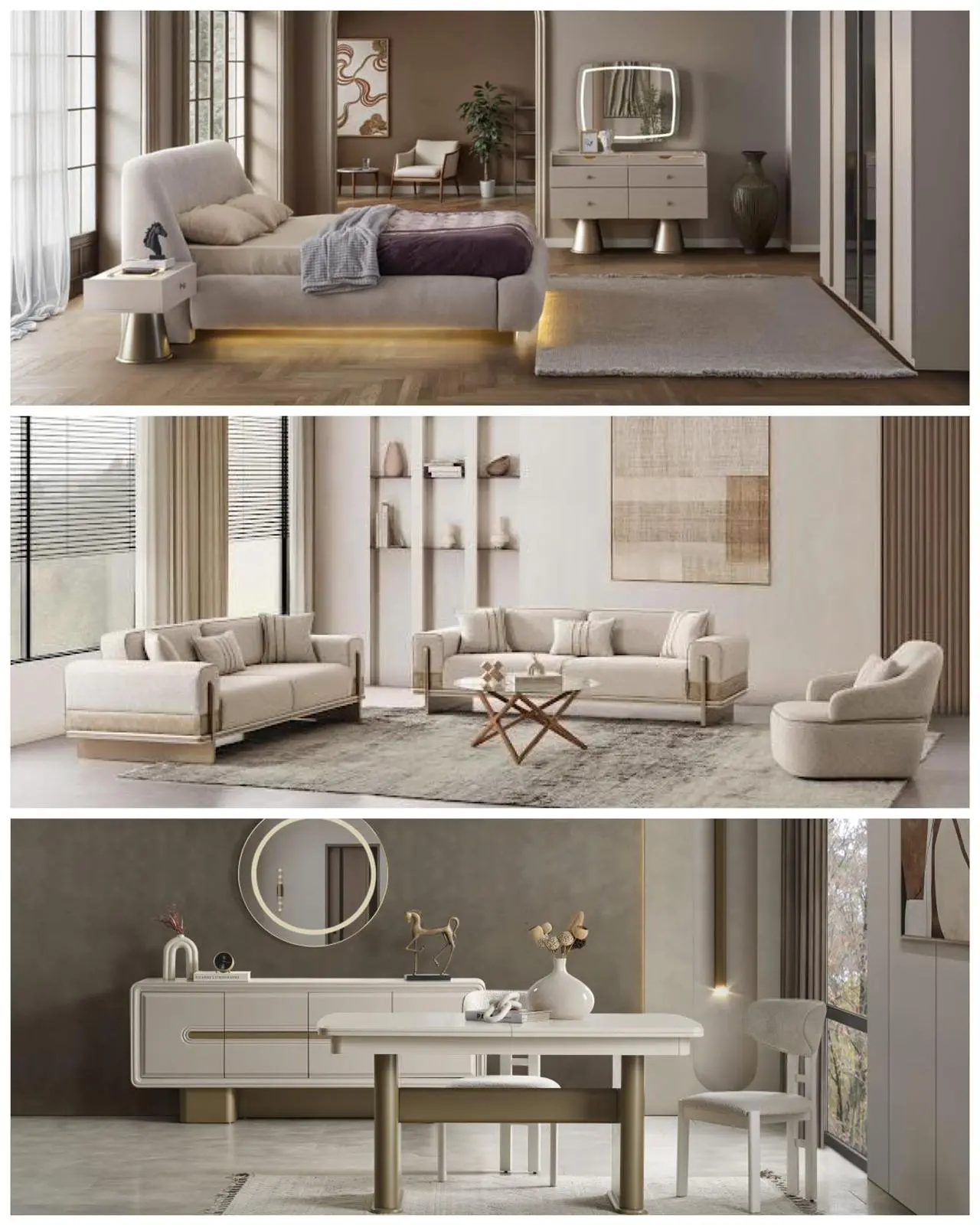 Dolce Düğün Paketi Yatak Odası Takımı, Masa Konsol ve 6 Sandalye, 3 3 1 Koltuk Takımından oluşmaktadır.