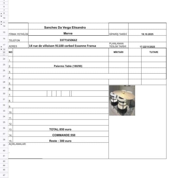 Takım İçeriği Takım içeriği 1 adet masa, 6 adet sandalye, 1 adet konsol ve aynasından oluşmaktadır.