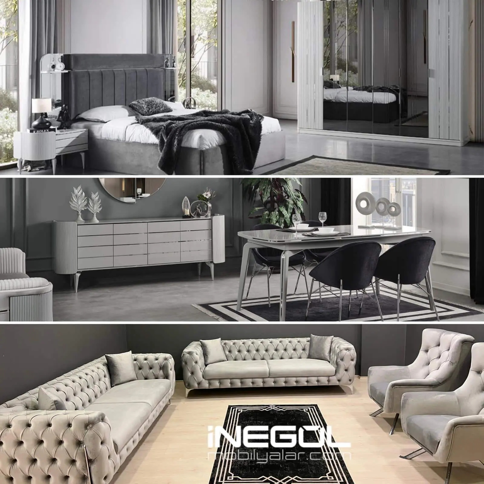 Karya 2  Düğün Paketi Yatak Odası Takımı,Yemek Odası Takımı ve 3 3 1 Koltuk Takımından oluşmaktadır.
