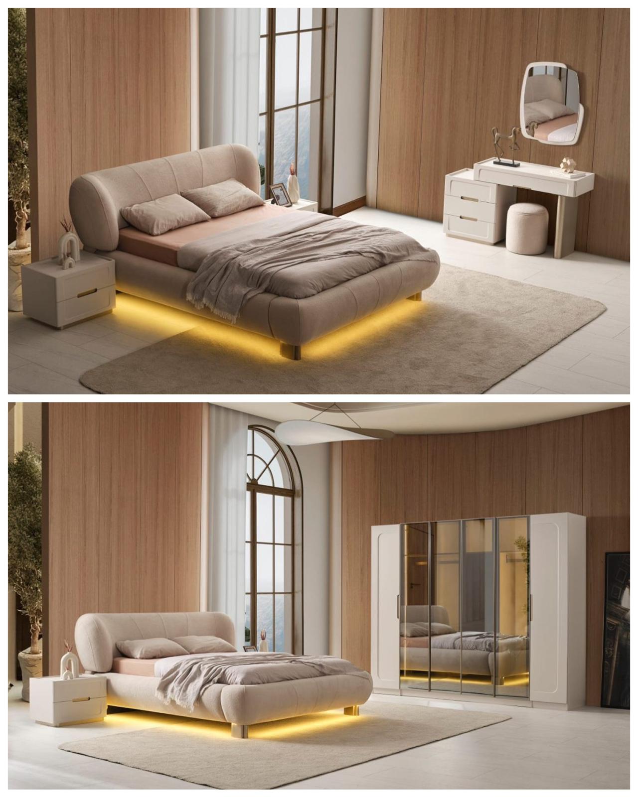 New Calista Düğün Paketi Yatak Odası Takımı, Masa Konsol ve 6 Sandalye, 3 3 1 Koltuk Takımından oluşmaktadır.