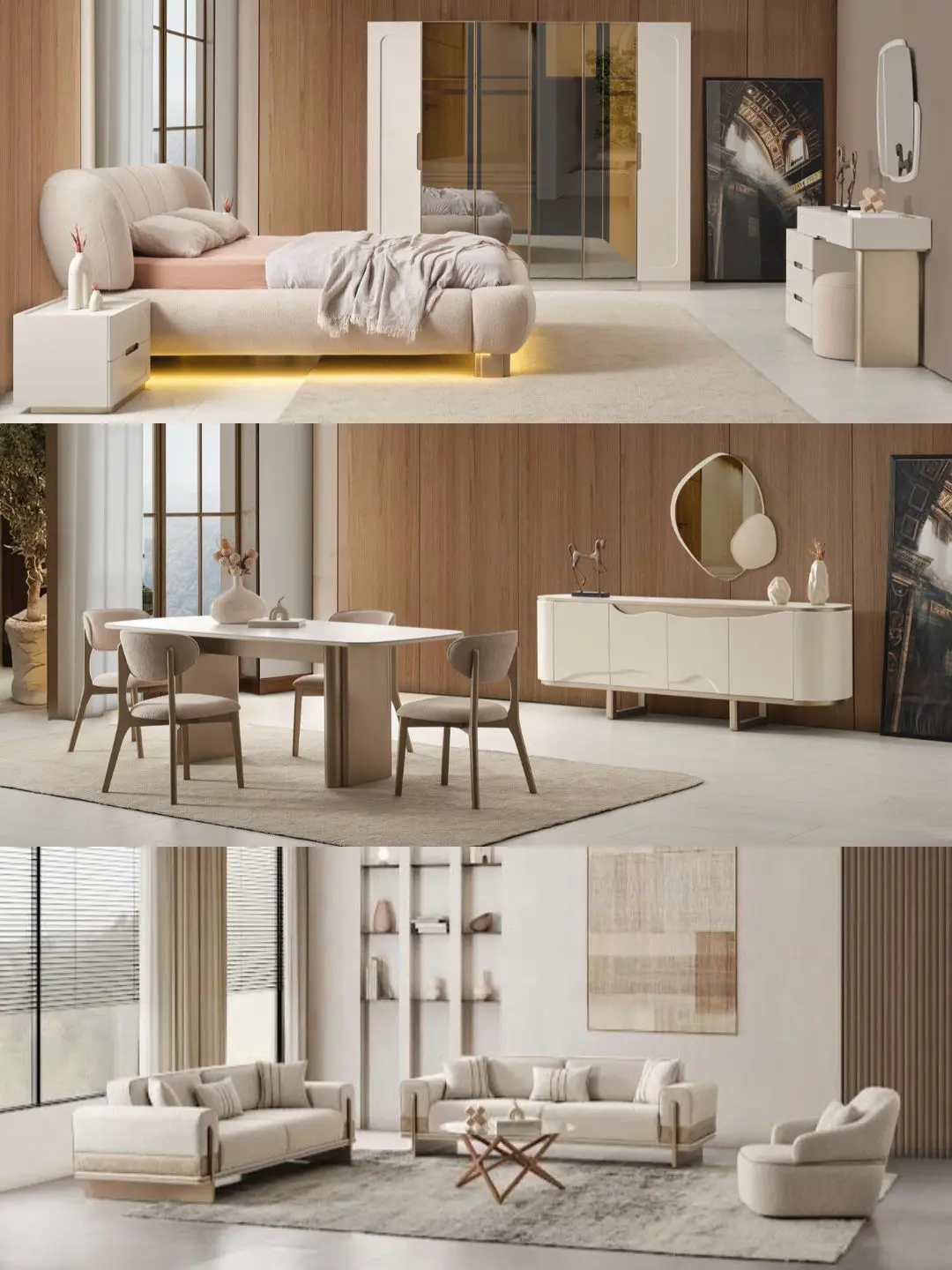 Pera Düğün Paketi Yatak Odası Takımı, Masa Konsol ve 6 Sandalye, 3 3 1 Koltuk Takımından oluşmaktadır.