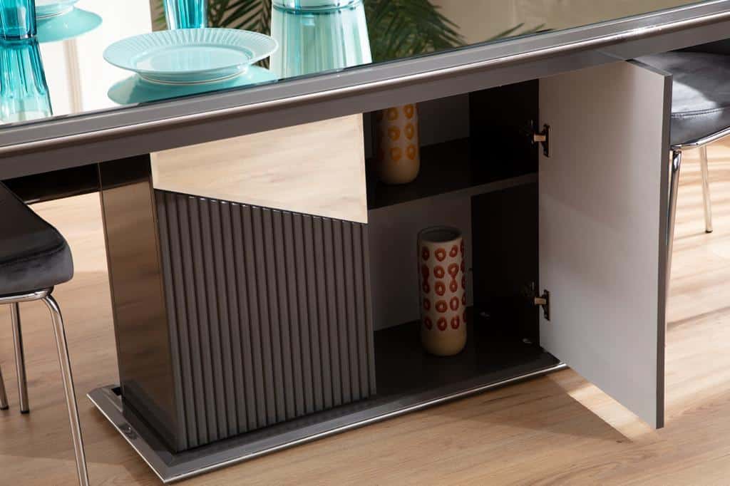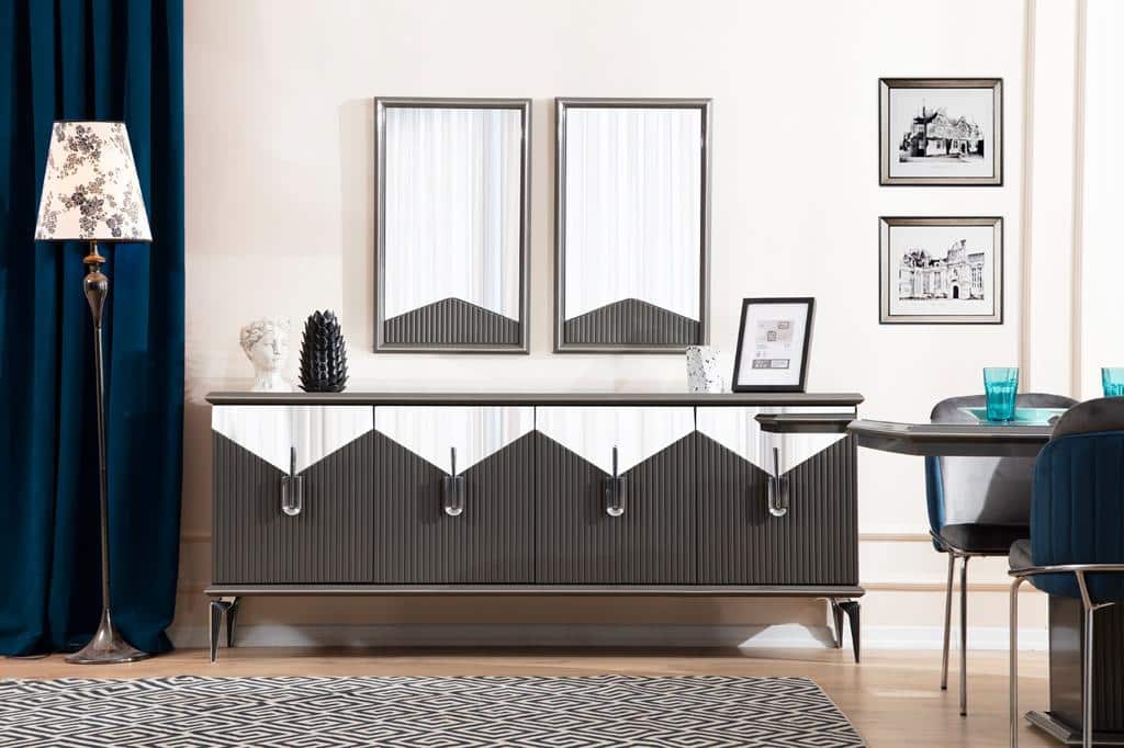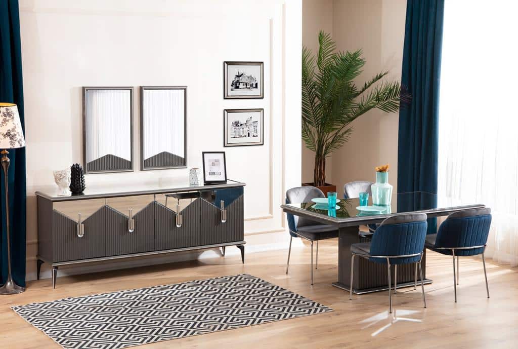 | Takım İçeriği | 1 Adet Konsol ve Aynası, 1 Adet Yemek Masası, 6 Adet Sandalye’den Oluşmaktadır. Tv Ünitesi Opsiyonel Olarak Satışa Sunulmuştur. |