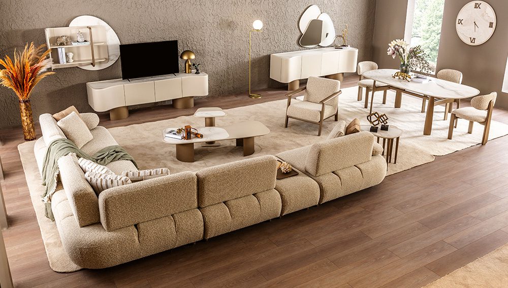 Efes Yaşam Odası Paketi 90×190 Masa, Sehpa 6 Sandalye ve Köşe Koltuk Takımından oluşmaktadır.